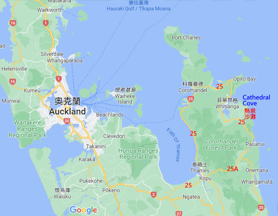 如果有足夠的時間,Coromandel Town(在左上角)是可以去的。